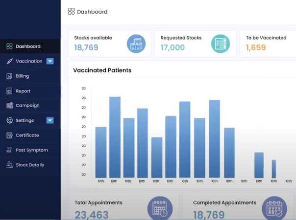 Vaccine Management System enables supervisors to utilize the built-in dashboard to track patient progress, handle cold chain, monitor vaccine inventory, and manage supply chain operations on a centralized platform. Healthcare professionals can plan upcoming dosages, monitor undergoing side-effects, and track patient vaccine regimen. It also lets employees scan barcodes on vaccine bottles to automate billing operations.