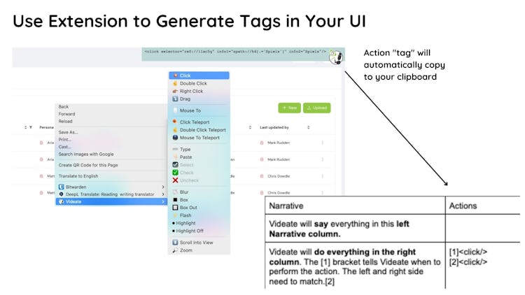 Streamlined Production: Say hello to turning written documentation into captivating videos, featuring realistic mouse movements and engaging text-to-speech voiceovers that sound almost human. Want to jazz up your video? It's as simple as adding annotations to your script, and Videate takes care of the rest, integrating special effects and transitions smoothly into your video. This approach not only simplifies video creation but also makes it an intuitive, almost effortless experience.