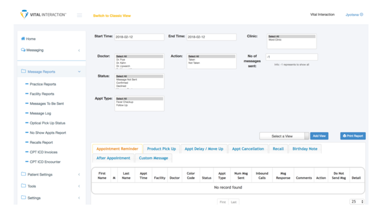 Vital Interaction offers an API, which lets businesses integrate the system with several third-party platforms such as Kareo Clinical, Centricity, CareCloud, Better Day Booking, Aprima EHR, and more. It helps employees send emergency cancellation or delay notifications to patients and measure patient satisfaction through automated post-appointment feedback and surveys.