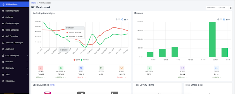Administrators can automate SMS, WhatsApp, and email campaigns to send distinct gentle reminders and recommendations. It allows managers to analyze different marketing campaigns and track conversions across different channels. The platform allows operators to visualize data across average order value, total sales, conversion rates, and recurring customers.