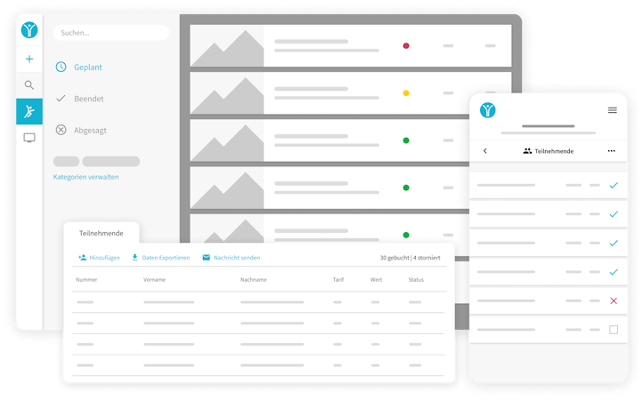 It enables easy GDPR-compliant course management and can be seamlessly integrated into any website without requiring IT knowledge. The views, such as weekly schedules or offer overviews, can be flexibly adapted to your club or business design. Participants can independently register around the clock, pay online, and benefit from a waiting list function. Automatically generated participant lists and notifications save you a lot of time and hassle!