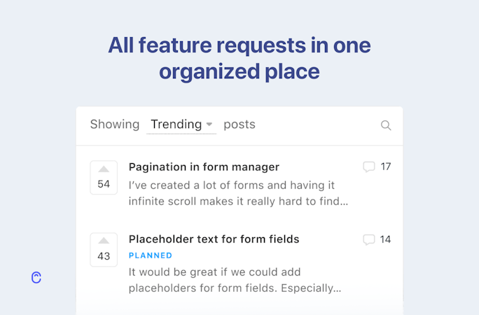 Canny is a single place for all customer feedback that saves you time managing all the feedback while keeping your customers in the loop. Let your customers post and vote on feedback from within your website or mobile app. You'll get an organized list of feedback that you can use to inform your roadmap.