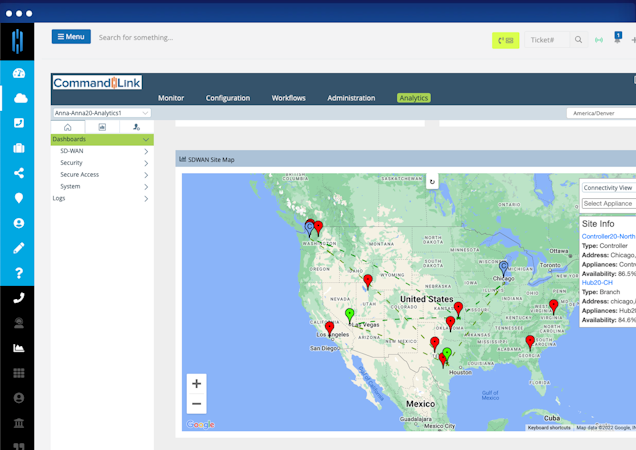 CommandLink also features intelligent automation to streamline repetitive processes. The CommandAutomate engine reduces manual efforts through customizable workflows, notifications, and task assignment. Tier-3 engineering support is available through the integrated CommandPOD module as well. The platform focuses on security with levers for access control, SD-WAN policy configuration, and SASE management. Granular analysis of network traffic, application performance, and usage patterns empowers data-driven decisions to optimize infrastructure.