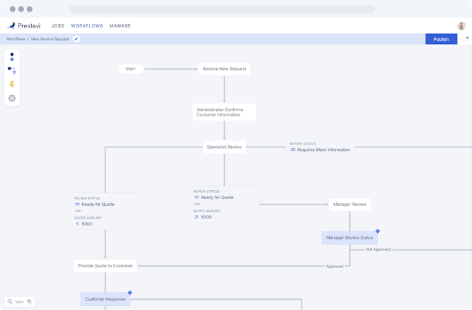 Prestavi makes it easy for customers, vendors and employees to follow business processes in a step by step format.