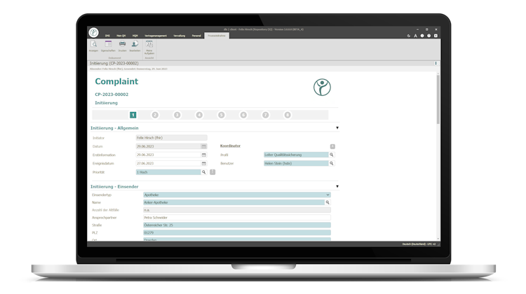 You can define specific products and batches as well as their properties and analyse laboratory results. Ad hoc analyses are also possible, and tasks can be assigned both in parallel and in series. Digital photos and other documents can be easily added to the complaint form. The system automatically generates a PDF document and saves it in the electronic document management system (eDMS) after each step. In addition, it maintains an audit trail that logs all activities and offers an optional function for return in process.