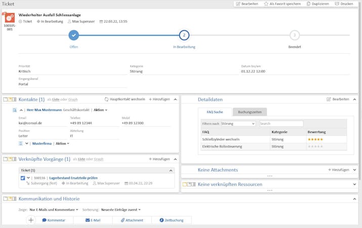 With its flexible configuration options, organizations can adapt workflows, ticket structures, and processes to their specific requirements. Whether used for customer service, internal support, or cross-departmental request management, ConSol CM / Ticketing provides a scalable and reliable solution that helps teams work more efficiently and ensures that every request is handled in a structured and transparent way.
