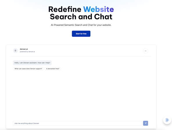 Denser AI is an AI-powered semantic search and chat tool for websites. It builds intelligent search and chat systems that can handle hundreds of thousands of web pages, delivering precise answers by citing source documents to minimize hallucinations.