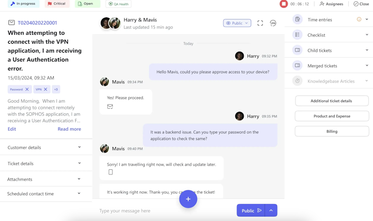 At the core of DeskDay is a conversational ticketing system that allows users to convert service desk tickets from various channels like email, chat, and Microsoft Teams into a direct chat interface. This allows technicians to resolve tickets and have conversations. Beyond superior ticketing, DeskDay centralizes other critical workflows for MSPs. Its intuitive interface enables real-time monitoring and collaboration for project management. Timesheets integrate with billing for accurate invoicing. The platform proactively identifies and resolves service delivery issues using rule-based quality assurance across tickets, projects, and timesheets.