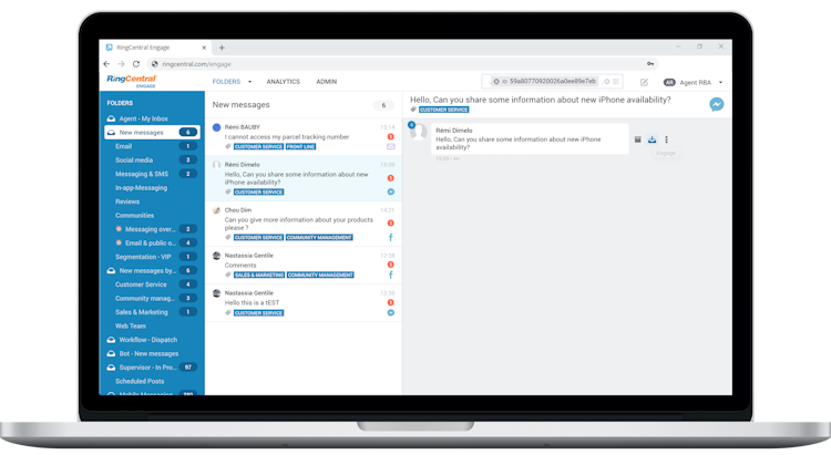 RingCentral Engage Digital, formerly Dimelo Digital, is a unified platform for customer service teams to manage all digital customer care channels and conversations, including email, social networks, chat, and mobile, through a single platform. The platform is best suited for companies with a minimum of 100 employees. RingCentral Engage Digital unified interface is designed to increase the agent’s response rate, streamline resources allocation and level the flow during peak periods as well as track customer conversation history, monitor channel activity, and more.