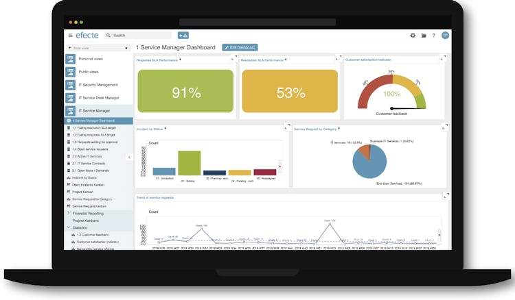 • Get started from day one with the out-of-the-box practices, workflows, and reports within Efecte ITSM.