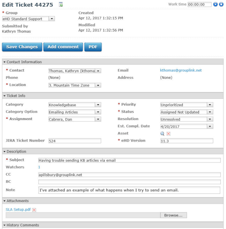 Utilizing everything HelpDesk’s ticketing platform, users can receive incident notifications from end users which are automatically converted into tickets and assigned to the relevant department within the app. Submission forms can be customized to align with business needs, and the help desk system can be leveraged across multiple departments with intelligent ticket routing to the relevant department. In order to assist technicians with workload management, incoming tickets can be uniquely flagged to draw attention to new and updated tickets for prioritization.