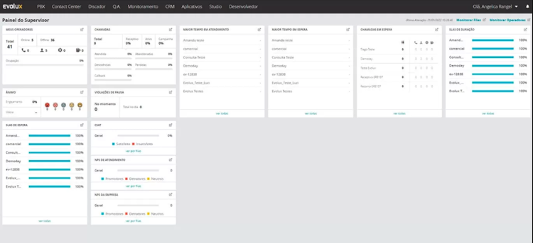 With the reports made available by the platform, the supervision of the Call Center is able to know how each operator's work is progressing, having access to information such as: logged and idle time; percentage of occupancy and disconnection; total of productive and unproductive breaks; call detailing; team mood; number of logoffs due to unanswered calls, among other data.