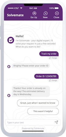 Our customer service automation platform is powered by smart conversational AI that allows companies to create highly personalized chatbot conversations at scale, guiding customers to find answers when they need them, so service teams can focus their expertise where it matters most. Solvemate’s unique contextual conversation engine approach means it learns more quickly, integrates more easily and resolves requests faster and more reliably than any other chatbot on the market. We have a dedicated team to help you every step of the way with industry-specific best practices to ensure you see value within weeks. Brands benefit from a highly personalized, real-time self-service experience that increases customer satisfaction, reduces costs, and offers actionable customer service insights. Solvemate has empowered innovative, growing companies to improve their customer experience and is trusted by brands such as On Running, musicMagpie, egym, and JustPark.