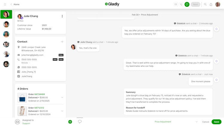 Gladly’s user interface