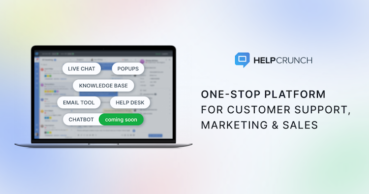 HelpCrunch is a top-rated customer communication platform for your Support, Marketing & Sales. Increase conversions and sales, improve support, and grow faster with HelpCrunch. Features: - Live Chat - Chatbot - Email Marketing - Help Desk - Knowledge Base - Popups Try HelpCrunch for free!