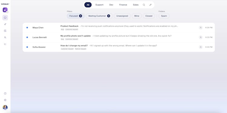 initdesk is an AI-native help desk software platform designed for modern support teams in SaaS companies, small and medium-sized businesses, indie hackers and solo founders managing customer support operations. The platform employs a pricing model based on support volume instead of per-seat licensing and consolidates multiple support email addresses into shared inboxes for centralized management of support, sales and other communications without enterprise complexity. Unlimited user access and inbox configurations allow organizations to segment communications by department, product line or brand without additional licensing requirements.