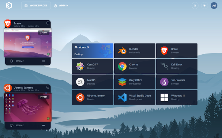 Kasm Workspaces’s user interface