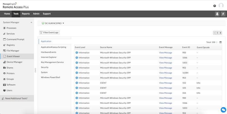 ManageEngine Remote Access Plus’s user interface