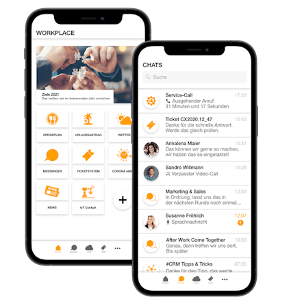 Particular attention is paid to involving external employees who are not in the office or at the branch. That's why the app offers numerous features like chat groups, video calls, and translation programs. Companies tend to work more successfully via optimized communications with both internal and external actors. In particular, both customer and employee satisfaction can benefit from improvements in the communication climate.