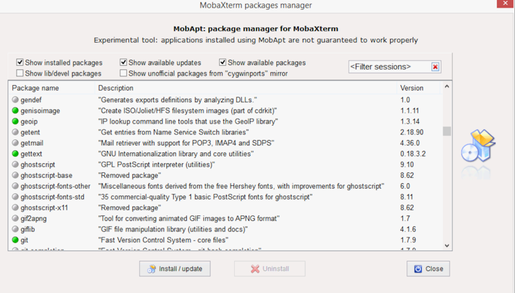 MobaXterm allows IT administrators to launch and create various remote sessions and run Unix commands via tabbed terminal. The built-in graphical tool includes fast picture viewer, text editor, file/folder comparison, and packet capture functionalities, which lets developers drag-and-drop files directly from the remote server using a secure SSH connection. It also offers a variety of other features such as master password protection, profile script modification, X11-forwarding, multi-execution, session sharing, and a graphical SSH tunnels builder.