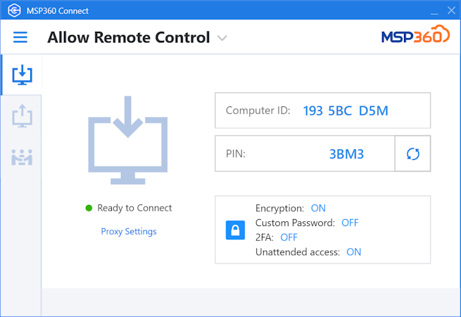 MSP360 Connect is a remote desktop solution designed for MSPs, IT professionals, businesses, and individuals. Whether providing remote support, managing IT infrastructure, or accessing personal devices, MSP360 Connect delivers fast, stable, and secure remote access. With features like unattended access, strong encryption, and seamless connectivity, it ensures efficient troubleshooting, remote maintenance, and collaboration—eliminating the need for on-site visits.