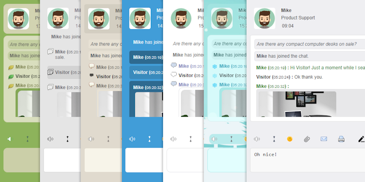 • Customize the chat request window with your company logo, welcome text, custom fields and themes.