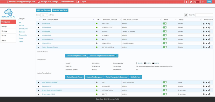 RemoteToPC is a remote access management solution designed to help IT organizations of all sizes monitor and manage remote devices or applications, and provide support services & training to clients. The platform enables professionals to monitor computer health, receive alerts for issues, and establish secure desktop connections using firewalls.