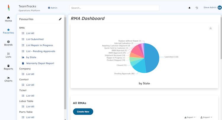 RenewityRMA is a cloud-based RMA (return merchandise automation) solution that helps businesses define and implement processes for returns and service management across multiple locations. Key features include quote generation, case management, serial number validation, KPI tracking, data export, and reporting.