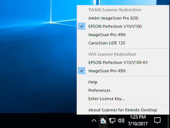 Scanner for Remote Desktop support options