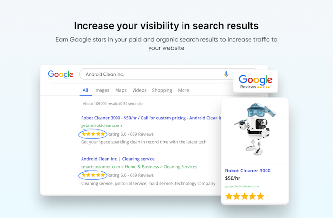 Beyond review management, SmartCustomer provides deep customer feedback insights and NPS metrics to help brands make data-driven decisions and improve customer satisfaction. As an official Google Review partner, the platform enables businesses to leverage ratings to boost ad conversions, helping them stand out in search and shopping results, and optimize total ad performance.