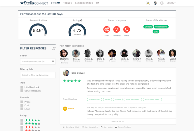 Medallia Agent Connect (formerly known as Stella Connect) is designed to help customer service teams manage customer feedback, coaching, and quality assurance processes on a unified platform. It enables managers to gain visibility into agent performance, create automated workflows, and reward agents based on customer feedback.