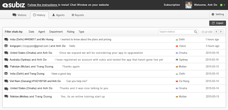 The features of our product are extremely easy to implement and utilize. Subiz Live chat software enable sales and customer support teams to see exactly who are visiting the website and what they do using dashboard. Then, operator team can get started with live support and chat with visitors.