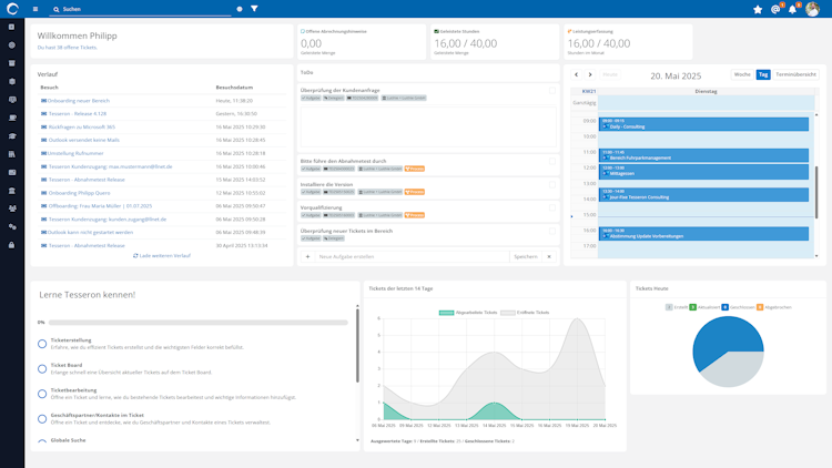 Mit Tesseron erhalten Sie jederzeit einen klaren Überblick über alle Anfragen, Aufgaben und Prozesse. Dashboards, SLA-Tracking, lückenlose Historien und Echtzeit-Updates erhöhen die Nachvollziehbarkeit und ermöglichen fundierte Entscheidungen.