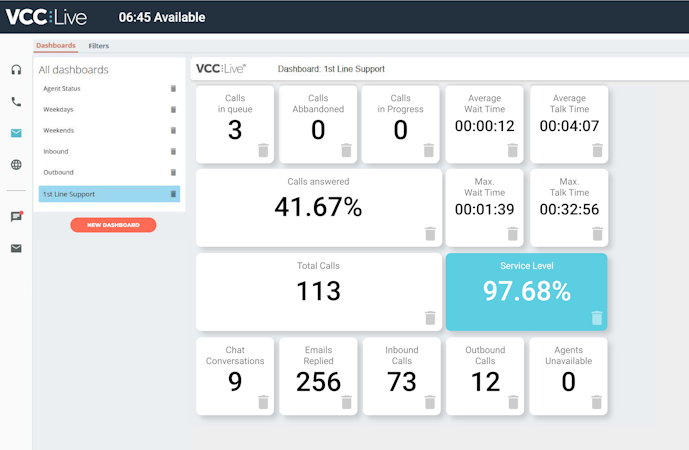 VCC Live is a cloud-based contact center solution, providing telecommunications services to businesses with more than 10 operators that want to offer prompt support to their customers. Its advanced features (IVR, real-time statistics, high security, predictive dialer and VCC Pay among others) allow your contact center team to perform a wide variety of activities on a single platform. With VCC Live’s omnichannel solution, you can easily use and switch between multiple communication channels, including voice, email, chat, and SMS. Its unique feature, VCC Live Pay allows you to initiate real-time payments over the phone, speeding up debt collection and telesales processes.