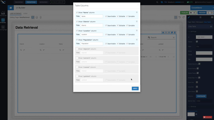 Backendless includes a UI Builder, which lets you build fully functional mobile and web applications. The UI Builder supports various client-side environments and automatically morphs data into a proper format to facilitate the frontend operating systems. Users can also connect external databases with the Backendless database to manage and organize existing data sources.