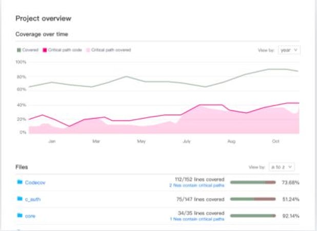 Coverage is a percentage calculated by dividing the number of lines the test could execute with the total number of hits, partial hits, and misses. The coverage is used as a standard within the Codecov platform and is different from what other systems use. Codecov automatically generates cinfigurable reports to help users gain insights into the performance and quality of codes.