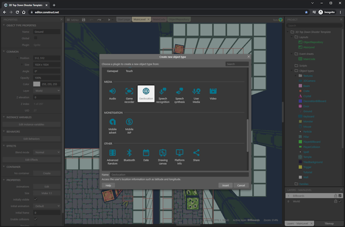 The software features a sophisticated visual scripting environment through its event sheet interface, allowing developers to establish game logic through an intuitive drag-and-drop system. While coding is not required, Construct 3 supports JavaScript integration for advanced functionality, enabling developers to combine visual blocks with custom code. The platform includes comprehensive development tools such as built-in image editing capabilities, collision detection systems, tilemap editors, an integrated physics engine, pathfinding algorithms, save game functionality, and networking features. Performance-optimized runtime environment supports advanced visual effects, including particle systems, lighting, and 3D features. Specialized tools for game development workflow include a scene graph editor, timeline functionality, and remote preview capabilities that facilitate testing across multiple devices.