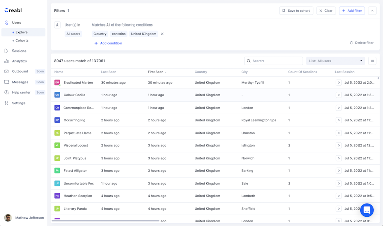 Creabl helps businesses create funnels, and have them broken down by behavior or any user attribute to understand better what users convert most actively. Teams can define the funnel steps that may cause friction to engage users.