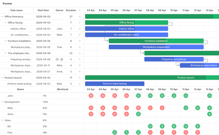 - Advanced project management with dependencies, auto-scheduling, and critical path visualization.