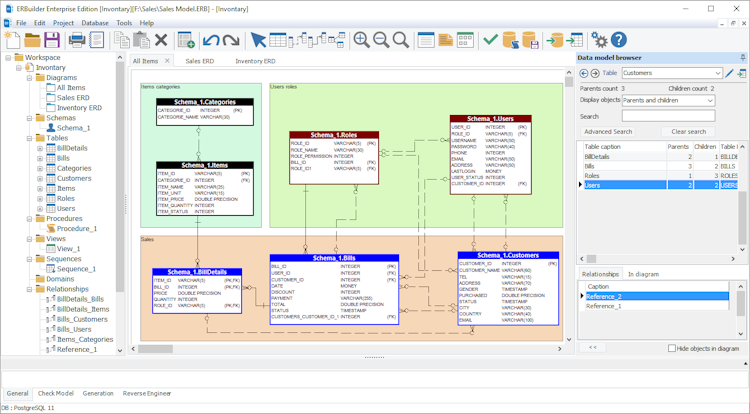 ERBuilder Data Modeler is a GUI data modeling tool that allows developers to visualize, design, and model databases by using entity relationship diagrams and automatically generates the most popular SQL databases. Generate and share the data model documentation with your team.