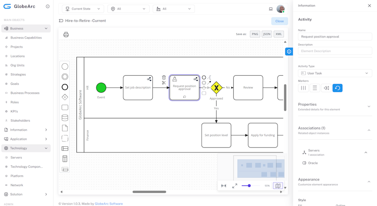 GlobeArc Software is a cloud-based enterprise architecture and business process management platform that creates a comprehensive map of organizational elements. It illustrates relationships among processes, systems, data and people across business units and over time. The platform is tailored to the needs of business analysts, process managers, CIO and CTO leaders and enterprise and business architects. It provides a unified environment for achieving strategic clarity and operational alignment through integrated business architecture.