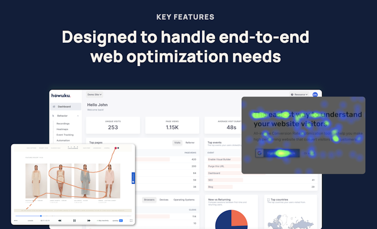 Howuku is an all-in-one conversion optimization to help website owners understand user behavior and optimize conversion rates. With key features, businesses can see what the user does on the website through heatmap, session recordings, running an A/B split test to improve the content, identifying the drop-off point with funnels, and also collecting feedback from users.