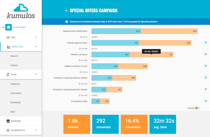 With Kumulos, marketing teams can quickly create personalized journeys that users love, turbocharging mobile app engagement and creating vocal brand advocates for life. We put your team back in the driving seat, providing them with all of the powerful marketing tools they need for greater control, faster growth and measurable results. The Kumulos toolkit includes Mobile and Web Push Notifications, In-App Messaging, Deferred Deep Linking, Web-to-App Banners, Geo-fencing and Proximity Marketing, App Store Optimization, mBaaS and Crash Reporting - and so much more!