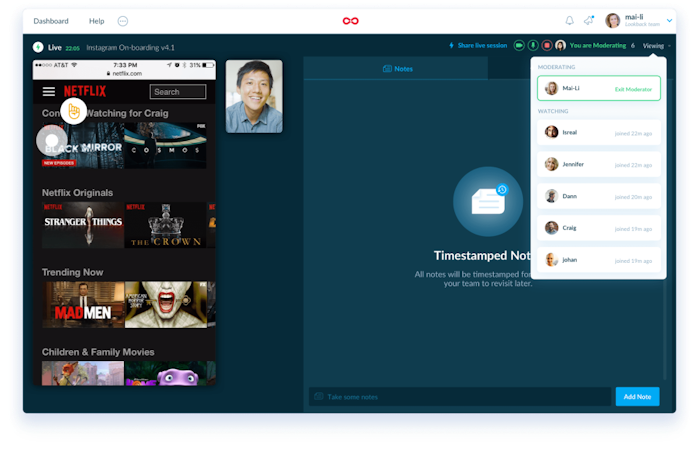 “Great tool for doing usability studies in particular - today's sessions used a prototype and Lookback saved the participants from having to go through multiple steps to access it.”