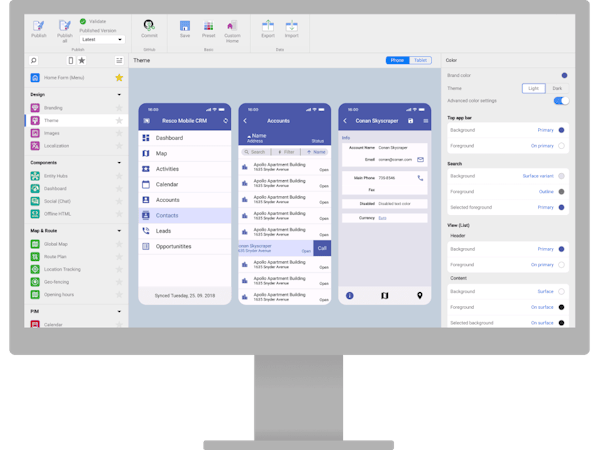 The point-and-click editor enables the setup of business logic to meet requirements. With the ability to theme the application with logos and brand colors, the product can be tailored to the organization's visual identity.