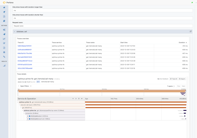 Perfana’s user interface