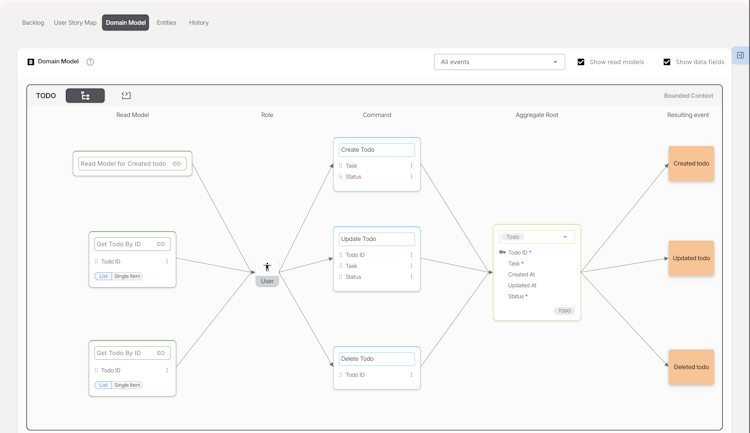 • Support for Leading Methodologies – Integrates with Event Modeling, Event Storming, DDD, User Story Mapping, CQRS, Simplified Process Mapping and more.
