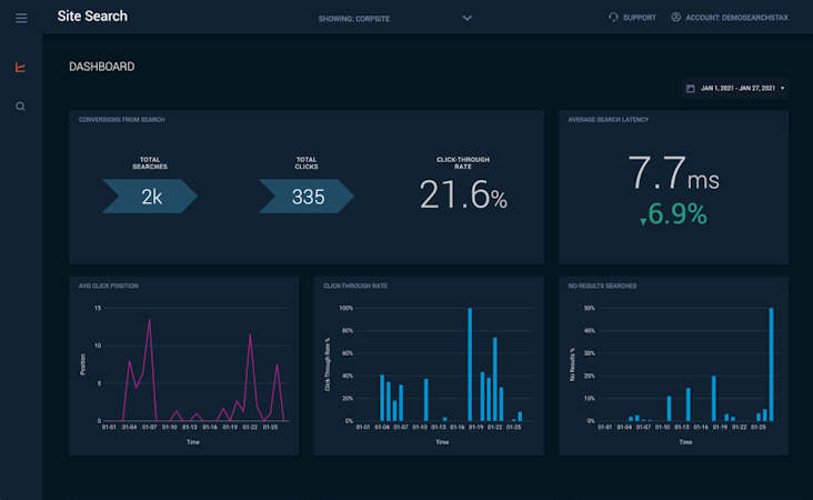 Site Search is a cloud-based website search tool that caters to marketers and developers to help them optimize search experiences for customers. It allows users to gain search insights, identify content gaps, and customize search results pages.