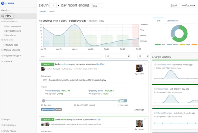 Sleuth is a real-time deployment tracking tool designed specifically for developers. The cloud-based platform helps developers to track the impact of their changes, provide real-time notifications regarding deployments to all team members or stakeholders, and track changes across production environments.