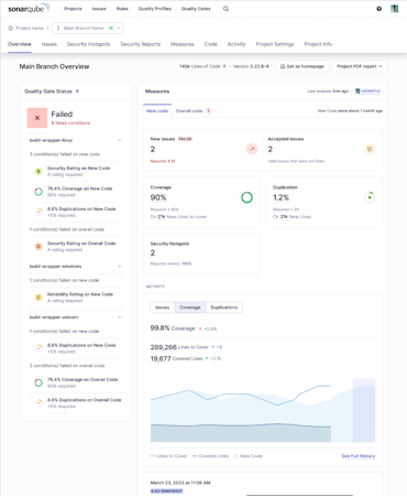 “SQ scans with Quality Gate allows protection of your deliverables from both common code errors, platforms' issues Devs might not be aware of, or code regressions or code suboptimal organisation that might make it harder to support in the long run. This allows you to limit publishing of product only if it qualifies for release as per project defined quality levels or fail the pipeline otherwise, keeping your deliverables safe and customers happy. ”